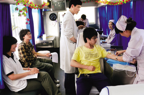 昨天傍晚,嘉興市中心血站的獻(xiàn)血車開進(jìn)了嘉興職業(yè)技術(shù)學(xué)院,170多名大學(xué)生捋袖獻(xiàn)出愛心。
