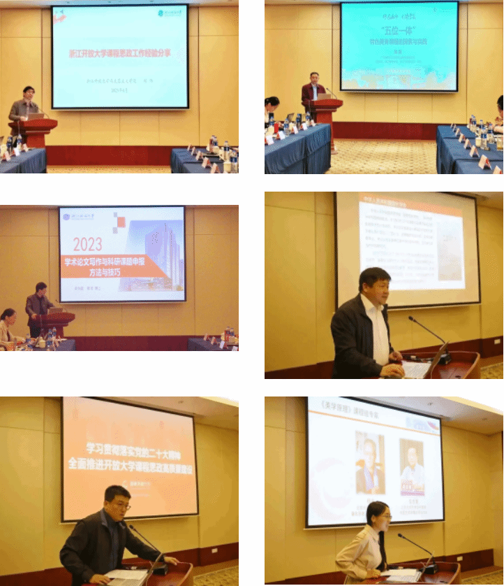此次會議研討了國家開放大學(xué)課程思政建設(shè)工作相關(guān)文件、《美學(xué)原理》課程思政建設(shè)、課程思政科研等內(nèi)容。會上,嘉興職業(yè)技術(shù)學(xué)院、開封文化藝術(shù)職業(yè)學(xué)院、廣州城市職業(yè)學(xué)院、浙江開放大學(xué)分享了各自學(xué)校的美育課程思政工作經(jīng)驗,美育專家學(xué)者分別圍繞課程思政建設(shè)、學(xué)術(shù)論文寫作與課題申報方法、紅色經(jīng)典與美育等主題進(jìn)行交流。一場干貨滿滿的美育盛會,為如何充分發(fā)揮課程思政示范項目的引領(lǐng)作用,助力加快教育現(xiàn)代化、建設(shè)教育強(qiáng)國、辦好人民滿意的教育開拓了新思路、提供了新方法、指明了新路徑。