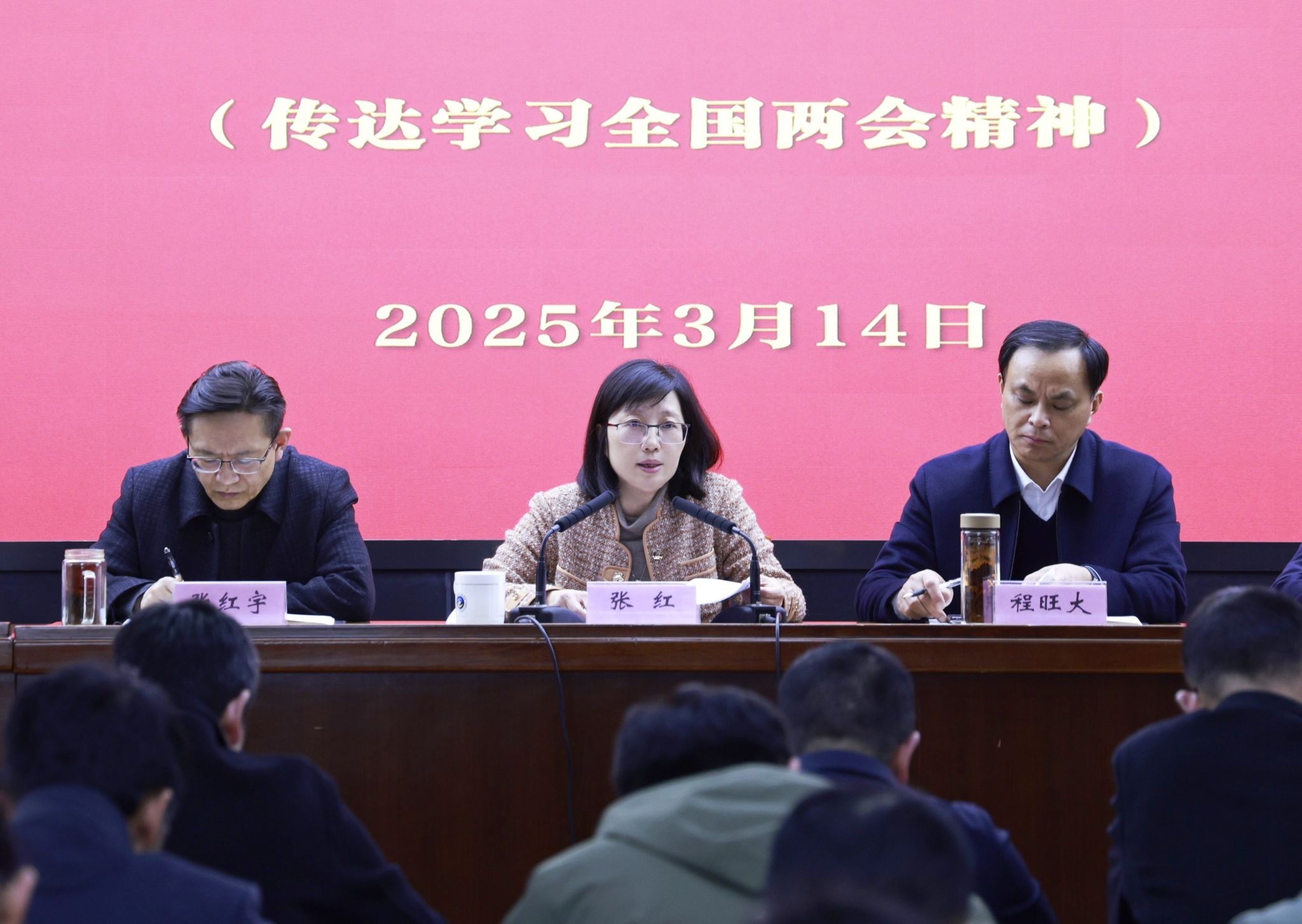 3月14日,嘉職院召開中層及以上干部會議,傳達(dá)學(xué)習(xí)全國兩會和省市領(lǐng)導(dǎo)干部會議精神。院長張紅出席并講話。