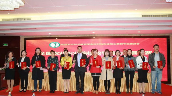 在中國職業(yè)技術教育學會農(nóng)村與農(nóng)業(yè)職業(yè)教育專業(yè)委員會2018年學術年會開幕式上,農(nóng)業(yè)農(nóng)村部科教司紀紹勤處長宣讀了本次大賽的一、二等獎獲獎名單。教育部職成司劉杰處長、中國職教學會副會長馬樹超、農(nóng)專委主任王福海、中國農(nóng)業(yè)出版社副總編輯李耀輝、嘉興職業(yè)技術學院院長趙云等領導向一等獎獲得者頒發(fā)了榮譽證書和獎杯。