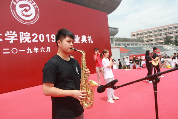 “以后再也聽不到上課的鈴聲啦,但你要記得按時(shí)上班;以后再也沒(méi)有了門禁時(shí)間,但你要記得早點(diǎn)回家記得帶鑰匙;用了三年的快遞默認(rèn)地址,你一定得記得修改;以后再也遇不到嘉職院的減速帶了,但你要記得注意出行安全;以后再也吃不到嘉職的食堂了,但你要記得按時(shí)吃飯……”,筵席將散,團(tuán)學(xué)干部們走上舞臺(tái)中央,以快閃的方式,載歌載舞,一旁的小伙子彈起了憂傷的吉他,有的吹起了薩克斯。