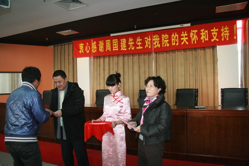 3月9日下午,我院2009年順昌幫困助學(xué)基金正式發(fā)放,院長(zhǎng)盛健出席發(fā)放儀式并作重要講話。儀式由院黨委委員、副院長(zhǎng)都建明主持,周國(guó)建先生偕夫人成蘊(yùn)女士親臨會(huì)場(chǎng),嘉欣絲綢股份有限公司工會(huì)主席、人事部經(jīng)理金解潮先生、各分院教師、學(xué)生代表以及受助學(xué)生等參加。
