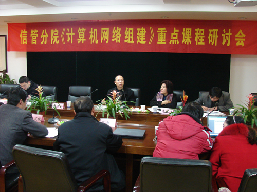 12月19日下午,信息與管理分院在行政樓208召開(kāi)了《計(jì)算機(jī)網(wǎng)絡(luò)組建》重點(diǎn)課程建設(shè)交流研討會(huì),特邀浙江省電子信息教指委委員、浙江省《中小企業(yè)網(wǎng)絡(luò)組建》精品課程主持人,浙江交通職業(yè)技術(shù)學(xué)院現(xiàn)代教育技術(shù)中心主任葉忠杰教授和課程組成員戎成老師參加了會(huì)議,學(xué)院副院長(zhǎng)周建新、教務(wù)處處長(zhǎng)沈建根、科技與產(chǎn)學(xué)合作處處長(zhǎng)黃雪峰以及分院各領(lǐng)導(dǎo)蒞臨指導(dǎo),信管分院21門(mén)課程建設(shè)負(fù)責(zé)人及部分教師參加了研討會(huì),會(huì)議由分院副院長(zhǎng)李玉清教授主持。