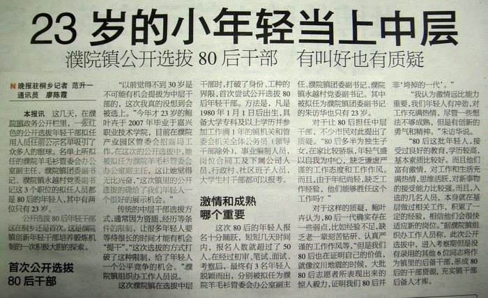 日前,從濮院鎮(zhèn)組織辦傳來好消息,畢業(yè)于我院服裝04班的鮑葉卉同學(xué),在今年濮院鎮(zhèn)公開選拔年輕干部中,憑借出色的表現(xiàn),經(jīng)過初審、筆試、面試和考察等層層篩選,現(xiàn)擬任濮院鎮(zhèn)羊毛衫管委會辦公室副主任。年僅23歲的鮑葉卉,成為了濮院鎮(zhèn)中層干部隊伍中最年輕的一員。對此,南湖晚報予以了特別報道。(宣傳部)