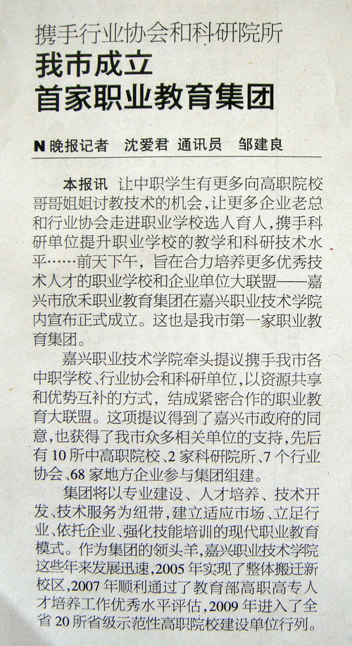 攜手行業(yè)協(xié)會(huì)和科研院所 我市成立首家職業(yè)教育集團(tuán)
