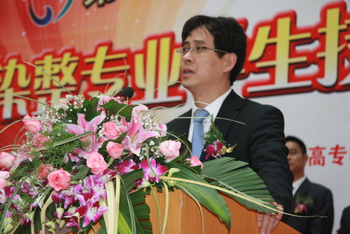 院長盛健首先致歡迎詞,他代表嘉興職業(yè)技術(shù)學(xué)院8000余名師生員工,對(duì)本次大賽的成功舉辦表示熱烈的祝賀,向?qū)3糖皝沓鱿敬未筚惖母骷?jí)領(lǐng)導(dǎo)和來自全國各地的19支參賽隊(duì)伍表示熱烈的歡迎!向?qū)Ρ敬未筚惤o予大力支持的企業(yè)界朋友表示衷心的感謝!隨后,嘉興市人民政府秘書長吳云達(dá)、教育部高職高專輕化類指導(dǎo)委員會(huì)主任李奠礎(chǔ)、浙江省教育廳高教處副處長陳雷、全國紡織服裝教育學(xué)會(huì)會(huì)長倪陽生等相關(guān)領(lǐng)導(dǎo)先后致辭,評(píng)委沈志平、參賽選手陳鳳鳴分別代表大賽評(píng)委和參賽選手宣誓。嘉賓們?cè)谥v話中表達(dá)了共同的愿望:全國高職高專染整專業(yè)學(xué)生技能大賽,是對(duì)全國紡織服裝類高職院校染整專業(yè)人才培養(yǎng)工作的一次大檢查,也是對(duì)染整專業(yè)學(xué)生技能的一次大檢閱。希望大賽組委會(huì)和工作人員,高起點(diǎn)、高標(biāo)準(zhǔn)、嚴(yán)要求,保證大賽公平、公正,努力把本屆大賽辦成有特色、有成效、有影響的大賽。同時(shí),也希望參賽選手本著交流學(xué)習(xí)、切磋技藝的目的,以精湛的技術(shù)、高超的技能,創(chuàng)造出優(yōu)異的比賽成績,充分展現(xiàn)紡織服裝類高職院校的風(fēng)采。