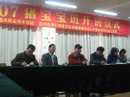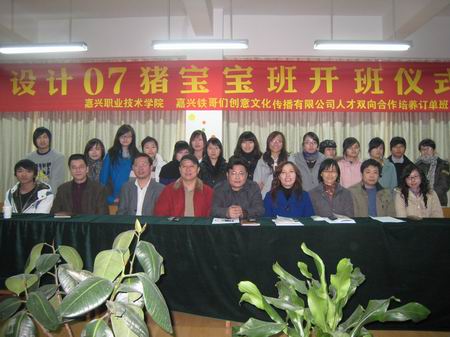據(jù)了解,本學(xué)期伊始我院紡織與藝術(shù)設(shè)計分院就與嘉興鐵哥們創(chuàng)意文化傳播有限公司積極進行協(xié)商,籌劃組建校企合作人才培養(yǎng)訂單班“創(chuàng)意設(shè)計07豬寶寶班”。經(jīng)過雙方努力,10月至11月,按照“雙向選擇、擇優(yōu)錄取”的原則,組織宣傳發(fā)動我院07級工業(yè)設(shè)計、動漫和服裝設(shè)計等專業(yè)學(xué)生自愿報名參加。后經(jīng)雙方共同選拔,共有20位同學(xué)被“創(chuàng)意設(shè)計07豬寶寶班”錄取。