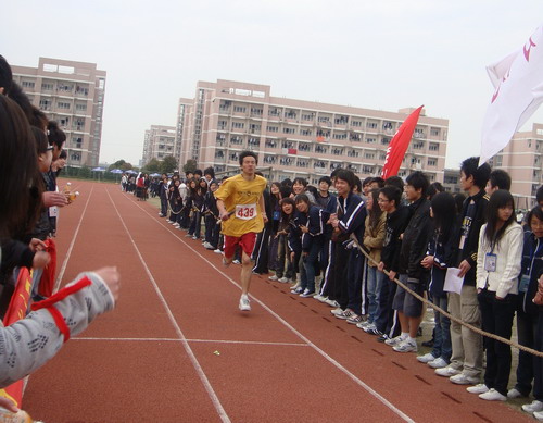 在這里隆重舉行的是由院團(tuán)委主辦的 “迎春萬(wàn)米”接力賽活動(dòng),參賽隊(duì)伍分別是:生環(huán)、機(jī)電、信管、外貿(mào)、紡藝分院,參賽選手分別由各分院的10名女生和10名男生組成,每位隊(duì)員跑400米,男女隊(duì)員交替跑完全程共8000米。院團(tuán)委書(shū)記魯中海老師親自擔(dān)任了本次活動(dòng)的發(fā)令者,只聽(tīng)一聲令下,運(yùn)動(dòng)員們箭步如飛,沖出了起跑線,場(chǎng)上的運(yùn)動(dòng)員們?cè)谒俣戎休^量,運(yùn)動(dòng)員你追我趕地拼搏,勇敢執(zhí)著地追求,將比賽推向了高潮。