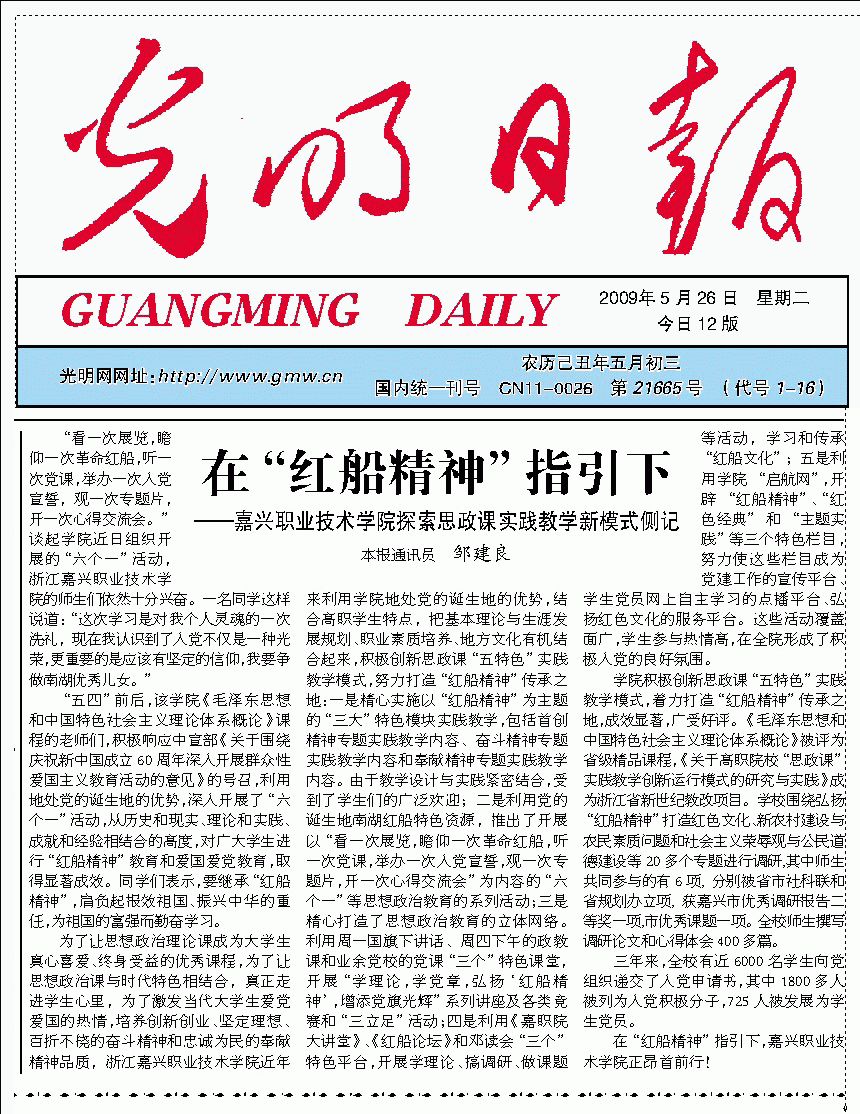在“紅船精神”指引下——嘉興職業(yè)技術(shù)學(xué)院探索思政課實(shí)踐教學(xué)新模式側(cè)記