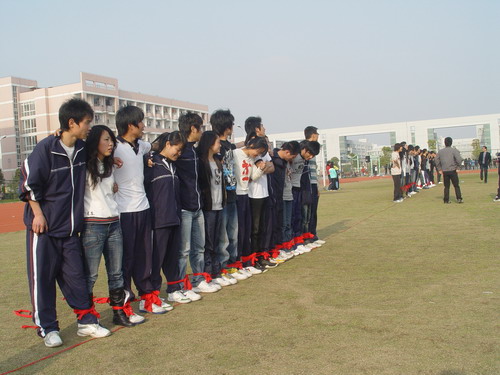 今年的培訓課程形式新穎,內(nèi)容豐富。第一堂動員及中心理論課程在3月23日晚6:30正式開始,由院團委書記魯中海老師擔任主講,魯書記用親切、自然地聊天方式就學院開展此次干部培訓課程的重要性、必要性予以強調(diào)并從學生干部自身素質(zhì)方面提出了希望及要求,課程中還學習了科學實踐發(fā)展觀,在2個小時的課程中不時從報告廳傳出同學們的陣陣掌聲。在實踐課程中安排了三大塊體現(xiàn)團隊協(xié)作性的文體活動,3月24日下午3:20在足球場上進行的第一項是“團結(jié)協(xié)作跳長繩”,每支隊伍5男5女共跳一根長繩;第二個項目是“齊心協(xié)力綁腿走”,每支隊伍7女8男,分別將腿綁上15人共同走向終點。參賽選手們個個摩拳擦掌,其他的學生干部加油吶喊,整個操場充滿著團結(jié)協(xié)作的精神。3月24日晚6:30分在報告廳進行的是“共唱和諧之音合唱”活動,6支隊伍的團學干部全部參與,嘹亮的歌聲和蓬勃的生機彌漫了整個報告廳,一片團結(jié)和諧的氣氛?;顒咏Y(jié)束后每支隊伍分別被授予單項獎并且進行了一個別開生面的頒獎儀式,頒獎嘉賓全部是來自各支隊伍的代表,頒獎獎品分別是每支隊伍的干部們自己手工創(chuàng)意制作的象征著友誼的紀念品。活動結(jié)束后,院團委書記魯中海老師對此次活動進行了總結(jié)。