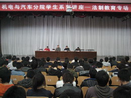 3月9日下午,機電與汽車分院在院報告廳舉行分院學生法制教育專場講座,特別邀請了嘉興市公安局馬建軍警官為分院學生們作了一次深入淺出的報告。學生處副處長、保衛(wèi)處金福泉處長出席了報告會。馬警官根據(jù)自己豐富的辦案經(jīng)驗,并結(jié)合校園內(nèi)的特殊環(huán)境,為同學們作了一次針對性、實用性很強的報告。接著分院領(lǐng)導(dǎo)向同學們提出了3點建議和要求。一是希望全體同學冷靜面對糾紛,準確處理同學關(guān)系,建立良好的校園文明秩序,關(guān)注自我,約束自我;關(guān)注他人,和諧相處;遵章守紀,完善自我。二是加強自我保護,增強安全防護意識,特別是提高防盜、防騙、防火、防個人人身傷害和意外傷害意識。三是加強學習,提高法制意識,增強法制觀念,建立和諧校園環(huán)境。報告會讓同學們受益匪淺。