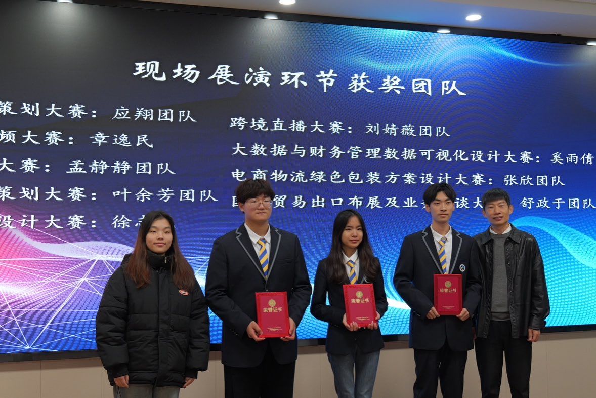 在專業(yè)技能競賽環(huán)節(jié),學(xué)院設(shè)置電商文案策劃、電商直播、電商短視頻、跨境文案策劃、跨境直播、跨境視覺設(shè)計(jì)、電商物流綠色包裝方案設(shè)計(jì)、大數(shù)據(jù)與財(cái)務(wù)管理數(shù)據(jù)可視化設(shè)計(jì)、外貿(mào)出口布展及業(yè)務(wù)洽談九大賽項(xiàng),全院400多名學(xué)生積極參與,經(jīng)過一個月的激烈角逐,最終68個團(tuán)隊(duì)勝出獲獎。