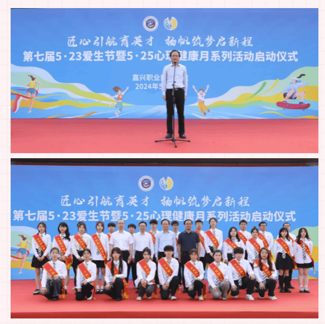 5月23日,嘉職院舉行第七屆“5?23”愛(ài)生節(jié)暨“5?25”大學(xué)生心理健康月系列活動(dòng)啟動(dòng)儀式。黨委書(shū)記朱學(xué)軍,黨委副書(shū)記、副院長(zhǎng)程旺大出席,黨委副書(shū)記張紅宇講話,黨委委員、副校長(zhǎng)陳海忠主持。朱學(xué)軍為學(xué)?!笆亚诠ぶ鷮W(xué)之星”“學(xué)生社區(qū)服務(wù)貢獻(xiàn)獎(jiǎng)”獲得者等一批優(yōu)秀學(xué)生頒獎(jiǎng),并宣布愛(ài)生節(jié)系列活動(dòng)正式啟動(dòng)。