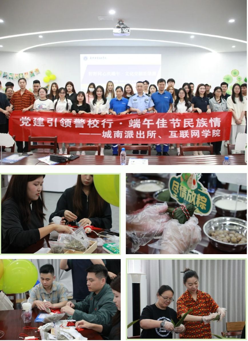 互聯(lián)網(wǎng)學(xué)院、網(wǎng)絡(luò)空間安全學(xué)院聯(lián)合經(jīng)開區(qū)派出所共同舉辦“籽籽同心慶端午·文化交融樂團圓”端午主題系列活動。城南派出所民警、少數(shù)民族學(xué)生、越南學(xué)生以及學(xué)院輔導(dǎo)員歡聚一堂,共享端午佳節(jié)。