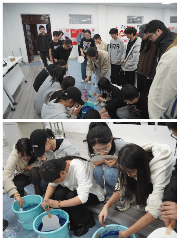 一筆一畫書寫防騙知識,一漆一墨繪制反詐畫扇。同學(xué)們將反詐知識的內(nèi)容精心手寫于空白漆扇之上,隨后緩緩地將這些漆扇浸入特制的漆扇制作桶中。隨著漆液在扇面上漸漸彌漫開來,一把把色彩斑斕、紋路獨特且富含個性化反詐信息的漆扇便制作完成了。