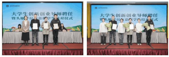 結(jié)業(yè)儀式上,進(jìn)行了校企師生結(jié)對(duì)、陣地授牌、基地揭牌等活動(dòng),進(jìn)一步完善了頭雁項(xiàng)目的組織架構(gòu),也為整合優(yōu)化政府、村企、學(xué)校多方優(yōu)勢(shì)資源建立起了可持續(xù)發(fā)展的合作平臺(tái),為后續(xù)跟蹤服務(wù)等工作的持續(xù)開展奠定了堅(jiān)實(shí)的基礎(chǔ)。