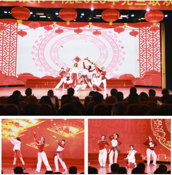 元旦聯(lián)歡晚會在校工會活力滿滿的舞蹈表演《桃花朵朵開》中拉開序幕。