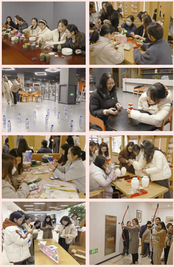 當(dāng)天,校婦聯(lián)積極開展“同守護她權(quán)益知識競賽”“柿柿如意手作DIY”“絨意繁花扭扭棒DIY”“健康快樂加減法”“芳華射藝風(fēng)”等一系列特色活動,營造健康和諧、積極向上的節(jié)日氛圍,提升女教職工愛崗敬業(yè)、樂于奉獻(xiàn)的工作熱情。