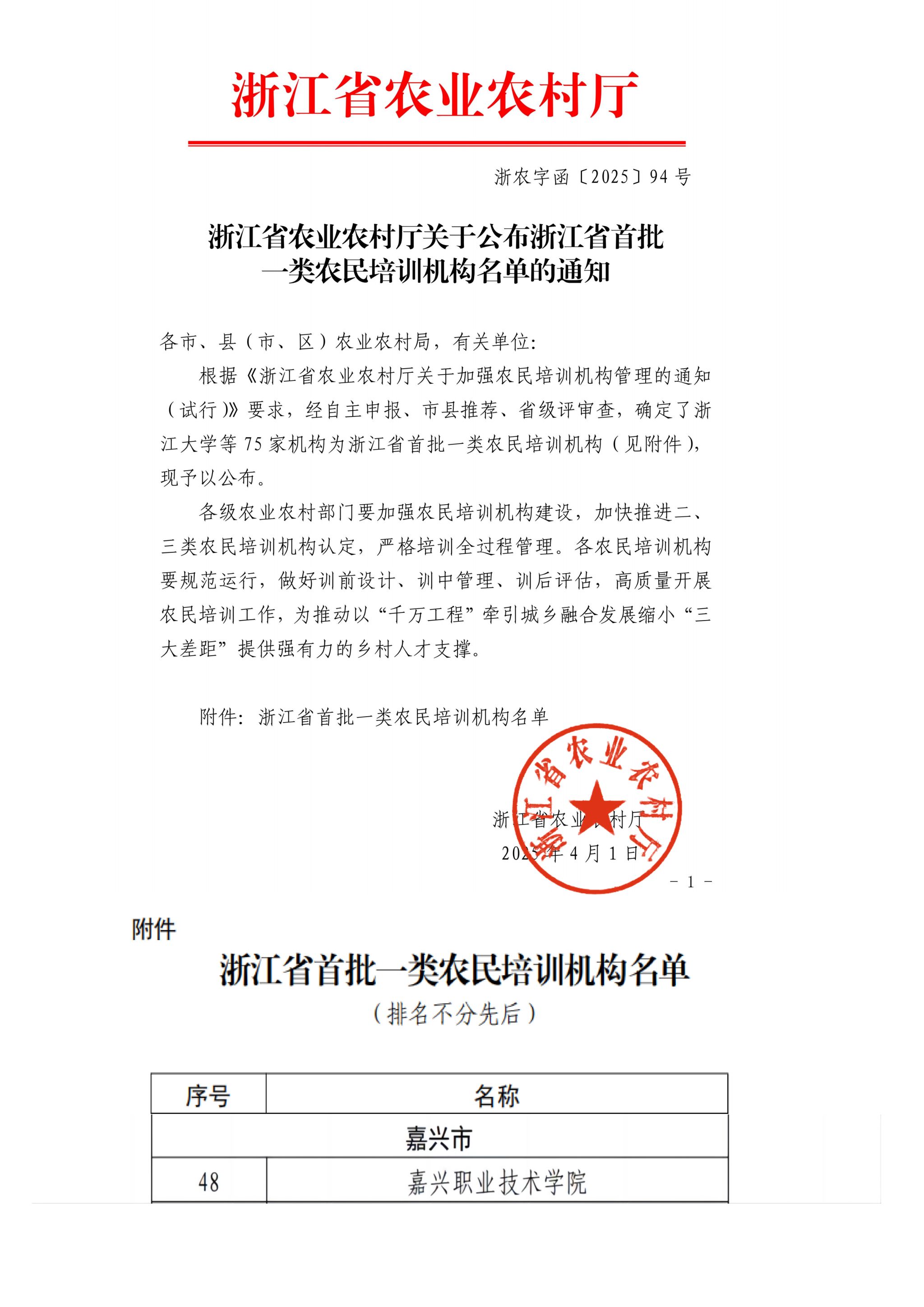 近日,浙江省農業(yè)農村廳發(fā)布《關于公布浙江省首批一類農民培訓機構名單的通知》,確定75家機構為浙江省首批一類農民培訓機構,嘉職院成功入選。