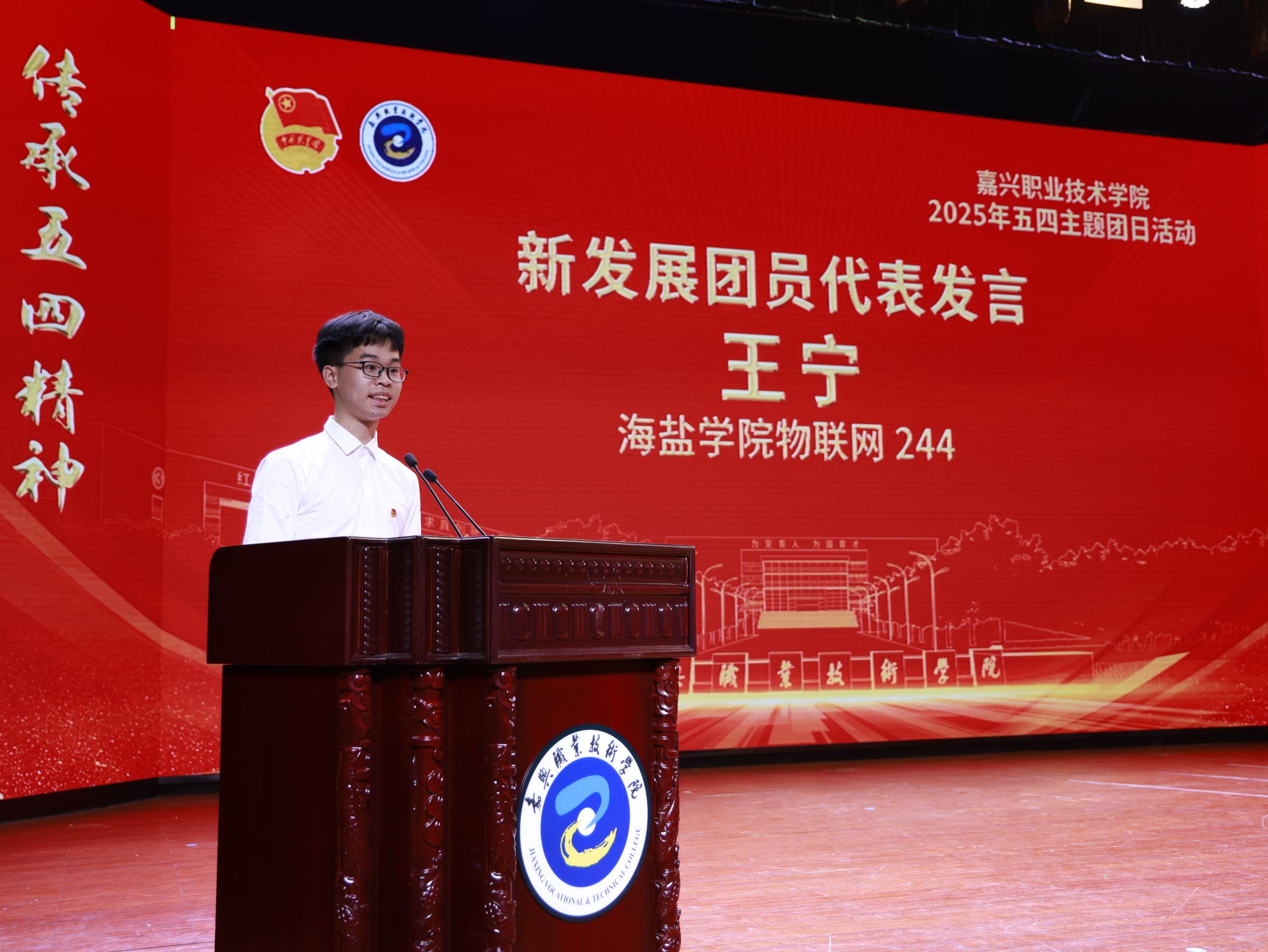 海鹽學院物聯(lián)網(wǎng)244班學生王寧和現(xiàn)代商貿(mào)學院跨境電商221班學生唐嵐莉,分別作為新發(fā)展團員代表和優(yōu)秀團員代表,結(jié)合自身的經(jīng)歷與感悟發(fā)言。他們的話語和行動詮釋著新時代共青團員的擔當,激勵著每一位同學不斷奮進。