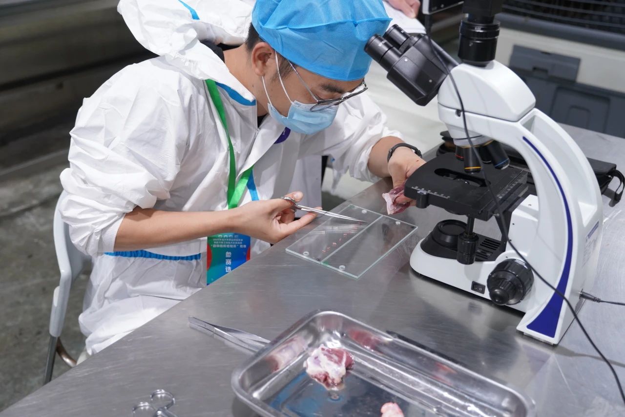 比賽中,身著防護(hù)服的選手們動(dòng)作嫻熟,從頭蹄、咬肌檢查到紅臟、白臟、胴體檢驗(yàn)?zāi)酥列x采樣,整套屠宰檢測流程行云流水,一氣呵成。裁判員切實(shí)履行職責(zé),以高度責(zé)任感、嚴(yán)謹(jǐn)態(tài)度和專業(yè)精神,依據(jù)競賽標(biāo)準(zhǔn)及細(xì)則進(jìn)行客觀公正評判,維護(hù)賽事公信力,確保競賽成為檢驗(yàn)技能、選拔人才的“試金石”。