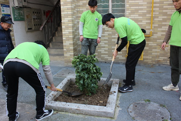 3月11日,工商與旅游學院團學干事們來到城南花園社區(qū)開展植樹活動,鏟除枯樹,種植新苗,深受社區(qū)居民喜愛。