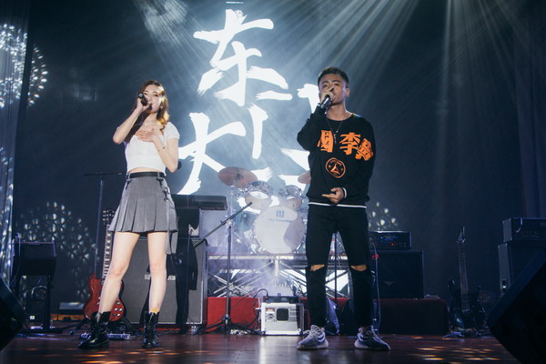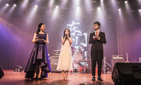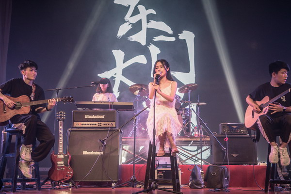 晚會伊始,伴隨著貝斯、鍵盤、架子鼓等樂器的節(jié)拍,舞臺中央聚光燈驟然亮起,東門大道樂隊正式登臺。主唱嗓音低沉且富有穿透力,《山?!非白嘁豁懫?,燃爆全場,現(xiàn)場觀眾隨著節(jié)奏一起搖擺。緊接著《斑馬,斑馬》、《烏克麗麗》、《我曾》幾首耳熟能詳?shù)牧餍懈枨亲屌_下觀眾們心跳加速、血脈噴張。一首《500 miles》,旋律優(yōu)美動人,被東門大道樂隊演繹出了別樣的風(fēng)格。主唱聲音低沉、歌聲深情動人、娓娓道來,使現(xiàn)場觀眾沉浸在動聽的歌聲中。《Loving strangers》、《不醉不會》、《love song》,一首首動聽的曲目,在樂手們的傾力彈奏下,主唱嘹亮的歌聲中,現(xiàn)場每一位觀眾熱血沸騰。