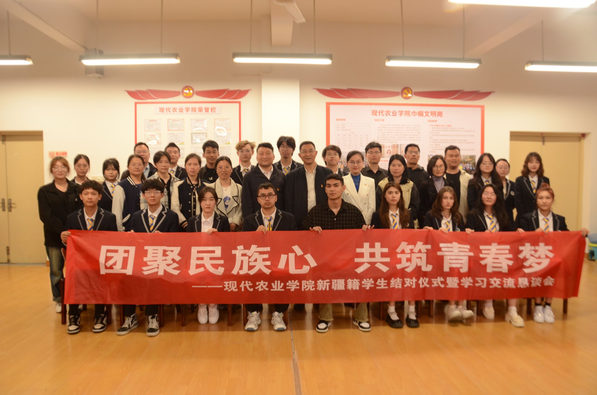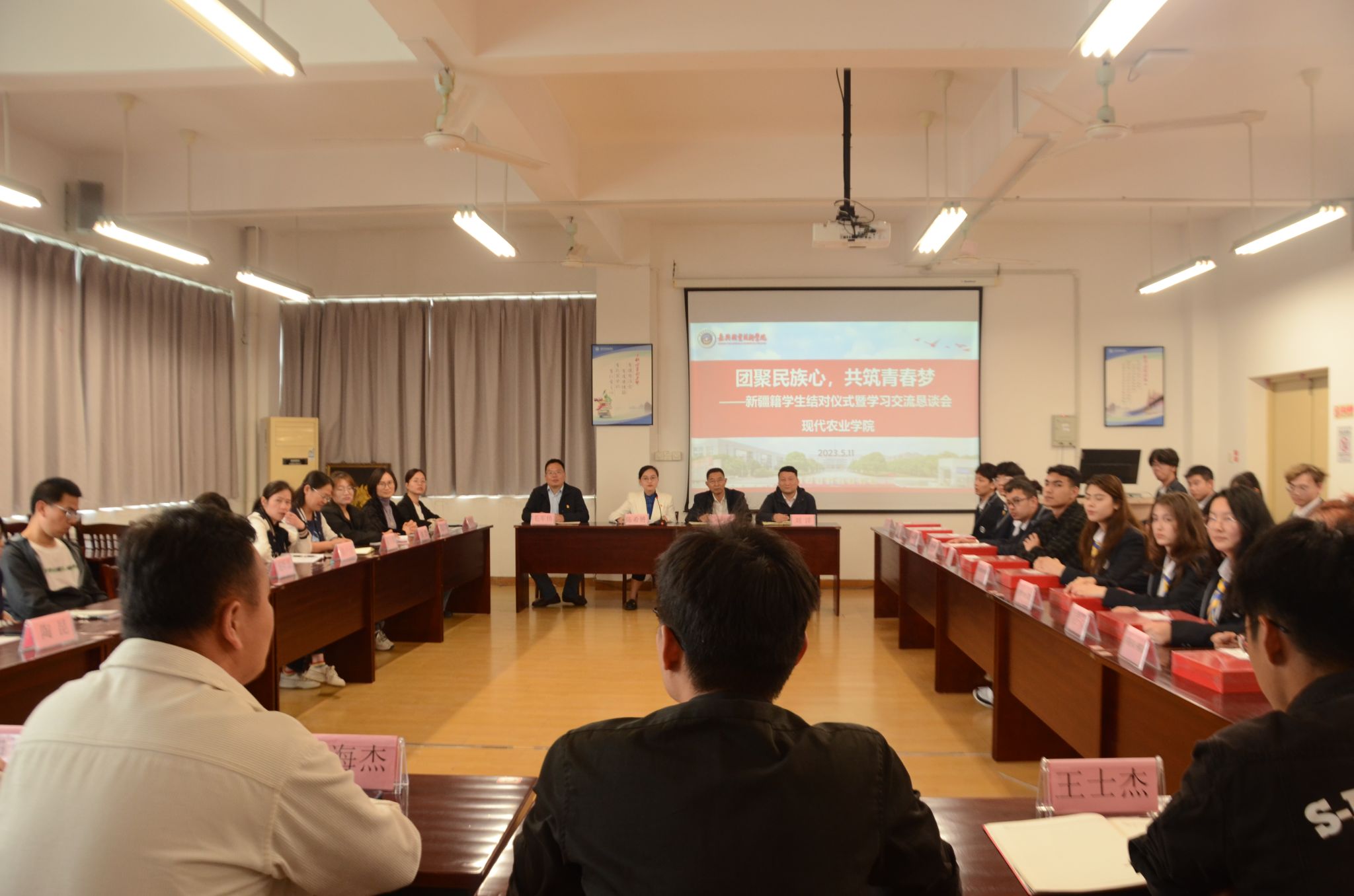 為進(jìn)一步了解新疆籍學(xué)生在校思想、學(xué)習(xí)和生活狀況,加強(qiáng)精準(zhǔn)幫扶工作,促進(jìn)學(xué)生成長成才,5月11日,嘉職院現(xiàn)代農(nóng)業(yè)學(xué)院召開“團(tuán)聚民族心,共筑青春夢”新疆籍學(xué)生結(jié)對儀式暨學(xué)習(xí)交流懇談會。