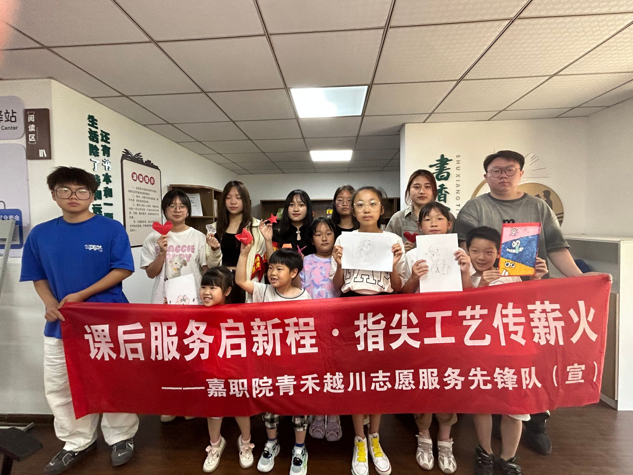 學(xué)院志愿者楊夏濤說:“我們在折紙和剪紙課程中,引導(dǎo)小朋友們從紅色文化中汲取靈感,將崇尚英雄的風(fēng)尚與非遺傳統(tǒng)藝術(shù)相結(jié)合,希望同學(xué)們熱愛中國藝術(shù)文化,熱愛嘉興這片熱土。”