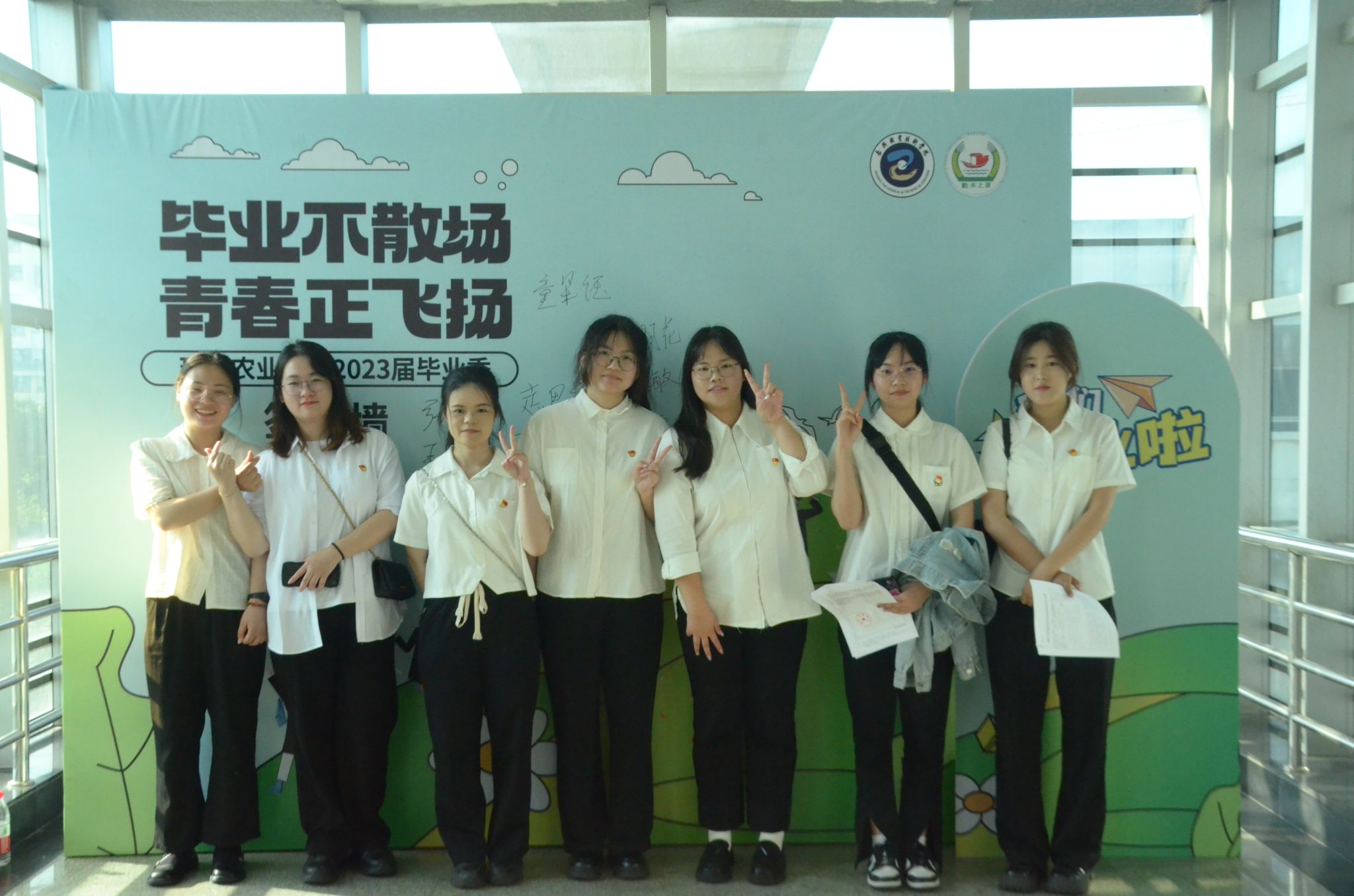 6月8日下午,在7-402室,學(xué)院組織開展了2023屆優(yōu)秀畢業(yè)生座談會。座談會開始前,同學(xué)們紛紛在現(xiàn)代農(nóng)業(yè)學(xué)院畢業(yè)季簽名墻上簽名,在拍照墻處打卡留念。快門定格,鏡頭記錄的是最美好的青春記憶。