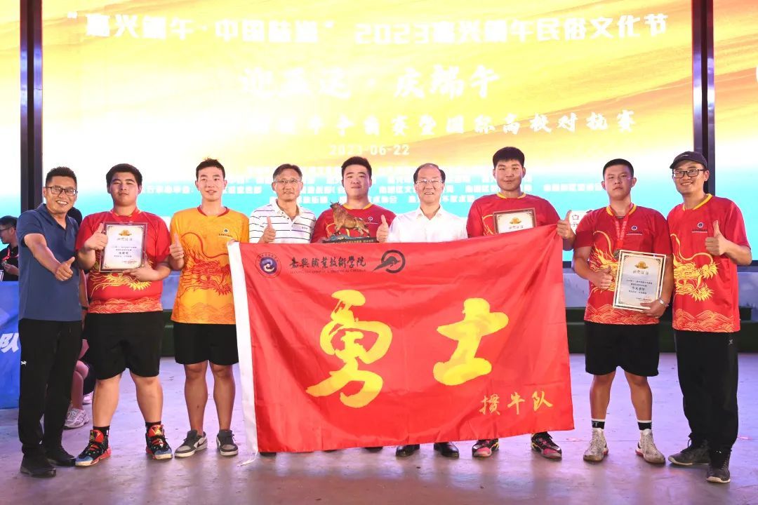 6月22日晚,2023年第十二屆中國摜牛爭霸賽暨國際高校對抗賽在嘉興南湖區(qū)凌公塘公園中國斗牛館盛大舉行,來自嘉興職業(yè)技術(shù)學(xué)院、嘉興學(xué)院、南湖學(xué)院、華東師范大學(xué)、蘇州大學(xué)、新西蘭奧克蘭大學(xué)等國內(nèi)外高校的40余名勇士進(jìn)行了精彩角逐,嘉興職業(yè)技術(shù)學(xué)院勇士摜牛隊發(fā)揮出色,勇奪團(tuán)體賽金牌和個人賽銅牌。校黨委書記方俊良作為特邀嘉賓出席比賽并為獲獎選手頒獎。