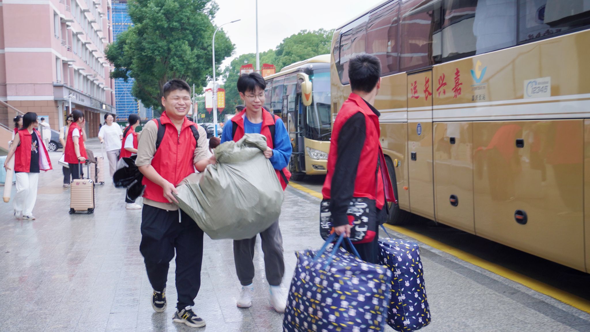 當(dāng)天,師生志愿者為不方便返校的同學(xué)提供行李打包、行李寄回等暖心服務(wù),積極熱情地幫助在校學(xué)生搬運(yùn)行李,樓上到樓下、宿舍到校門,志愿者們忙得大汗淋漓,熱情卻絲毫不減。學(xué)院還安排了送生入企崗位實(shí)習(xí)專線車,集中接送實(shí)習(xí)學(xué)生,架起傳遞學(xué)院溫情與祝福的橋梁。同學(xué)們紛紛表示,此次活動(dòng)特別暖心,他們將帶著母校的關(guān)懷砥礪前行、不懈奮斗。