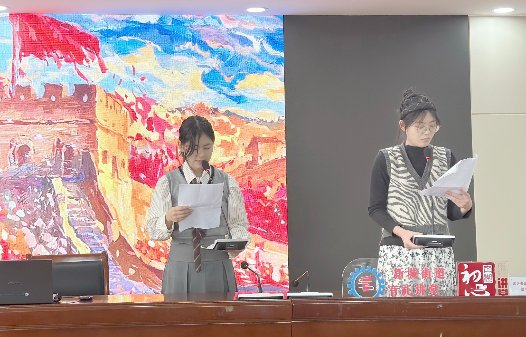 “雖然我們已經(jīng)說(shuō)不出他們的名字了,但我們知道,他們共同的名字叫英雄,他們的軀體不朽,已長(zhǎng)成了滿(mǎn)山的翠竹青松,他們的靈魂不朽,依然在我們的血液里奔流……”詩(shī)歌朗誦環(huán)節(jié),紅船青馬營(yíng)大學(xué)生志愿者王靈菲、朱敏捷兩位同學(xué),聲情并茂地朗誦著紅色詩(shī)歌《不朽》。這首詩(shī)以英雄故事為開(kāi)頭,描繪了一副戰(zhàn)火連天、硝煙彌漫的戰(zhàn)斗場(chǎng)景。對(duì)英雄們不畏生死,奮勇殺敵場(chǎng)景的描述,表達(dá)出對(duì)已逝先烈深切的緬懷與無(wú)盡的思念,向小朋友們傳達(dá)了抗戰(zhàn)英雄無(wú)畏的精神,希望小朋友們牢記歷史,如先烈般不畏艱險(xiǎn)共創(chuàng)未來(lái)。