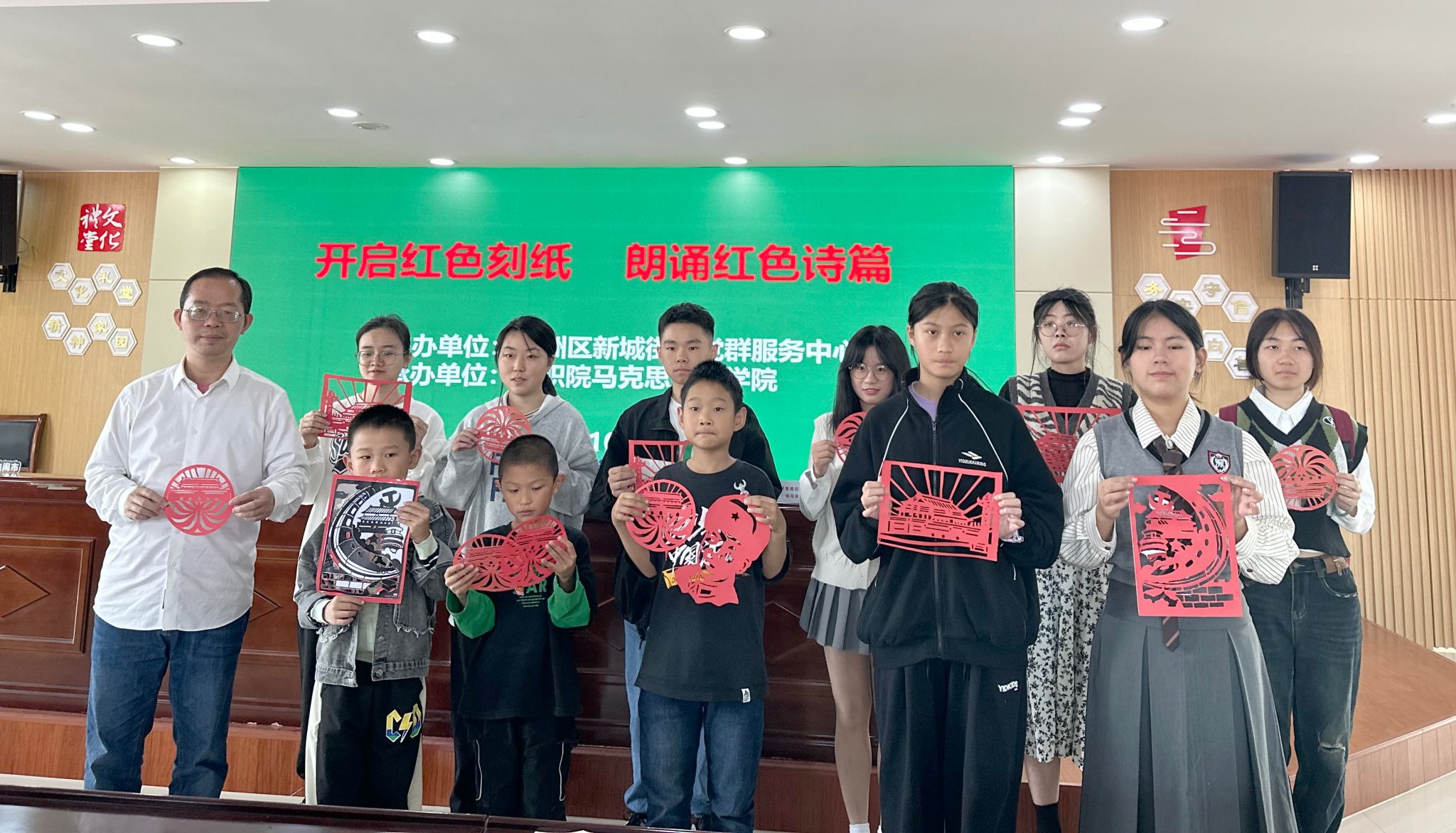 10月22日上午,嘉職院紅船青馬營(yíng)大學(xué)生志愿者在馬克思主義學(xué)院黨員教師帶領(lǐng)下,赴新城街道東升社區(qū)黨群服務(wù)中心開(kāi)展教習(xí)紅色刻紙、朗誦紅色詩(shī)篇、吟唱紅色歌曲“三個(gè)紅”活動(dòng)。