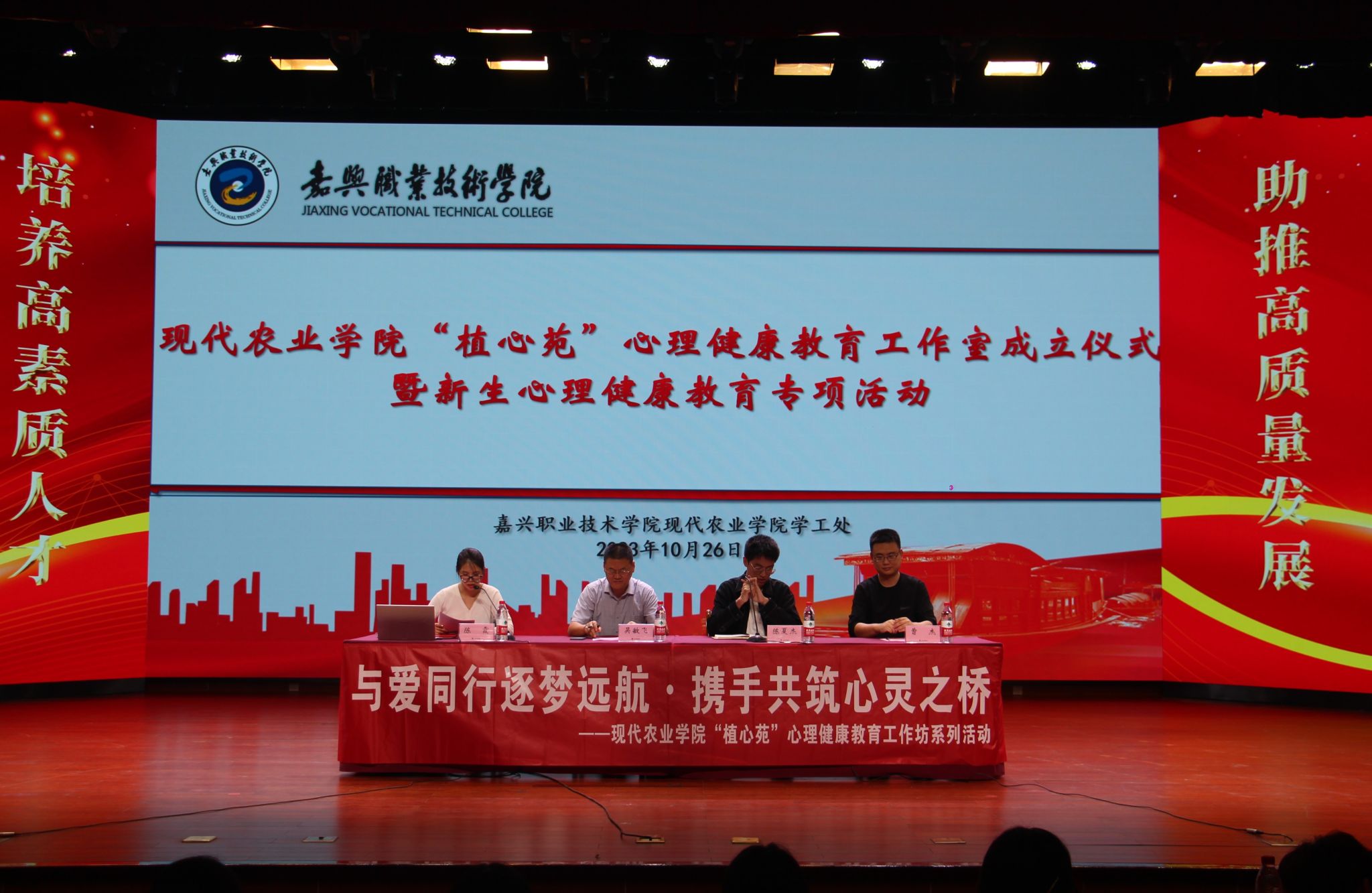 為進一步增強學生心理健康防線建設,打造全員全程全方位全環(huán)境立德樹人心理健康教育矩陣,幫助青少年培養(yǎng)良好的心理素質和樂觀向上的心理品質,10月26日,嘉職院現(xiàn)代農業(yè)學院舉辦“植心苑”心理健康教育工作室成立儀式暨新生心理健康專項教育,590余名師生參加本次活動。