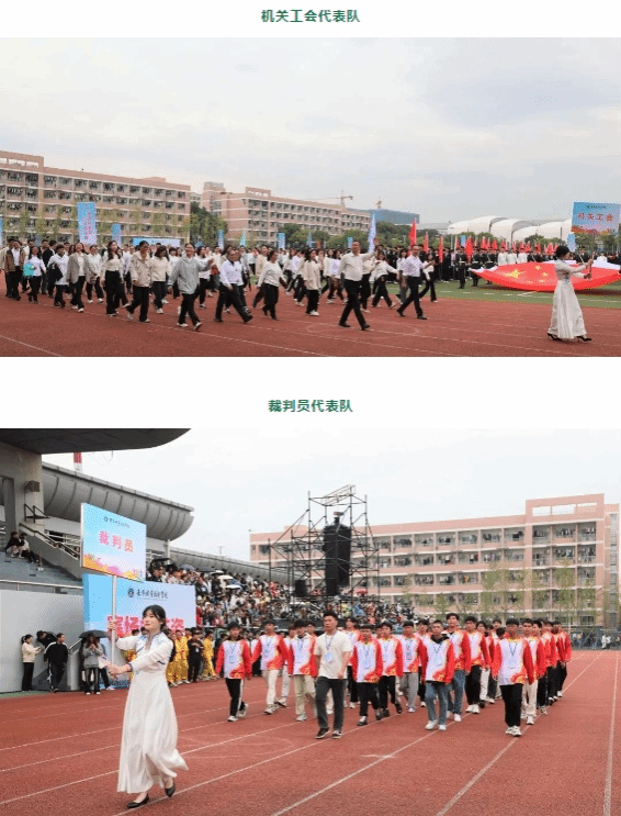 伴隨著慷慨激昂的運動員進行曲,國旗隊、校旗隊、鮮花隊、紅旗隊、各二級學(xué)院運動員代表方陣、各二級工會教師代表方陣和裁判團代表方陣等依次入場。他們邁著矯健的步伐、喊著嘹亮的口號,精神抖擻、意氣風(fēng)發(fā),斗志昂揚,充分展現(xiàn)了嘉職師生奮力拼搏、蓬勃向上的最佳風(fēng)采。