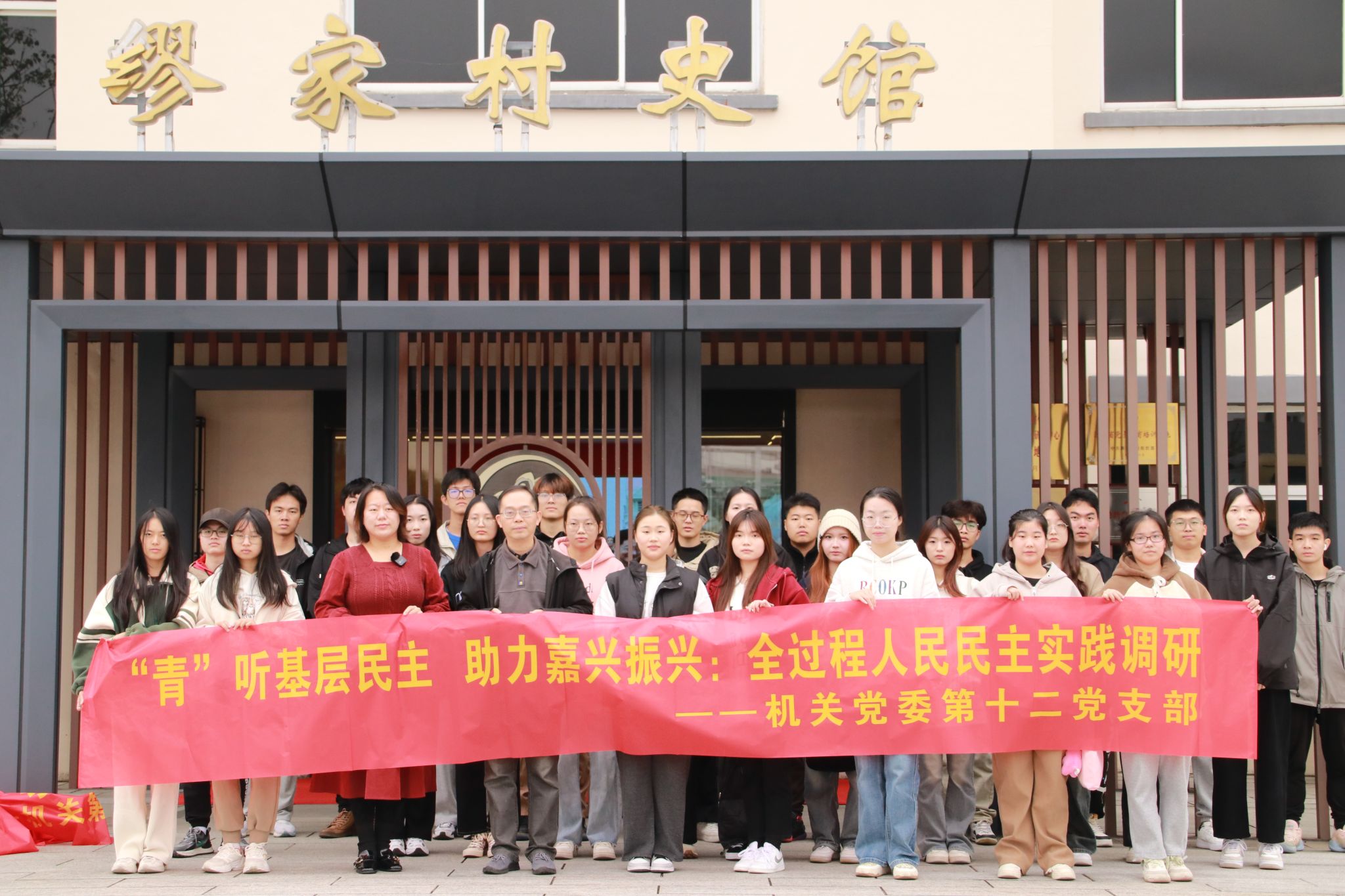 11月11日,嘉職院馬克思主義學(xué)院黨員教師帶領(lǐng)紅船青馬營(yíng)32位同學(xué),來(lái)到嘉善縣大云鎮(zhèn)繆家村開展紅色研學(xué)活動(dòng),大家追尋習(xí)近平總書記的足跡,來(lái)到繆家村史館,參觀村幸福十景,走訪繆家村文化禮堂,感受嘉興20年來(lái)統(tǒng)籌城鄉(xiāng)發(fā)展、推動(dòng)共同富裕的精彩蝶變。