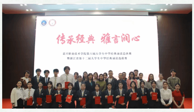 近日,浙江省第十二屆大學(xué)生中華經(jīng)典誦寫講大賽圓滿落幕。由嘉職院文化與旅游學(xué)院中文教研室指導(dǎo)團隊指導(dǎo)的何穎、石嘉萍、李彥熙等10位嘉職學(xué)子,斬獲個人組一等獎2項,二等獎1項,三等獎7項。嘉職院榮獲大賽“優(yōu)秀組織獎”。