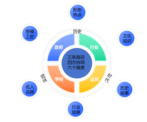 圖1 三條路徑、四方協(xié)同、六個(gè)維度模式示意圖