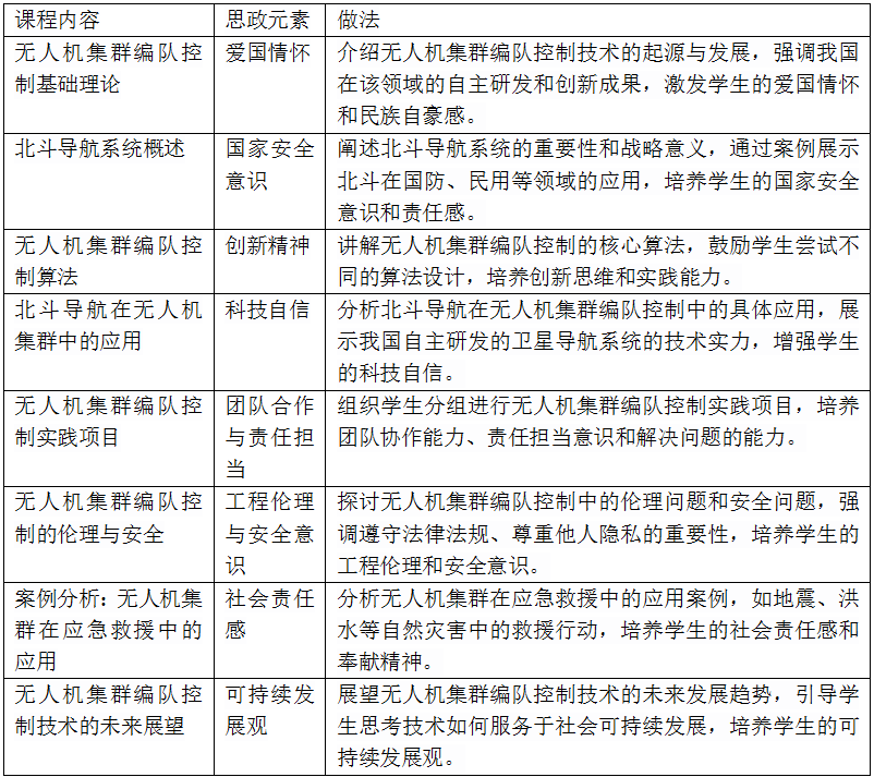 表1 無人機(jī)集群編隊控制技術(shù)課程思政元素