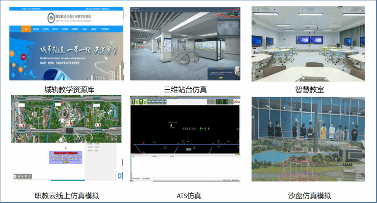 教學(xué)資源包括線上線下混合式教學(xué)資源,線上職教云及城軌教學(xué)資源庫,線下智慧教室搭配仿真軟件模擬真實(shí)城軌場景。