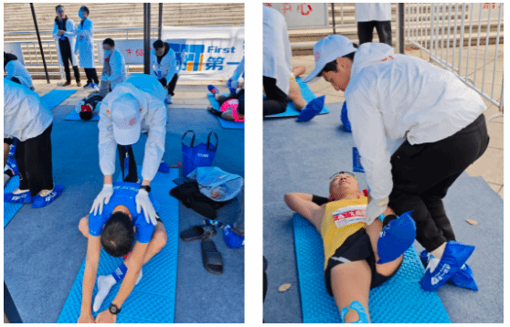 在半馬與全馬的終點,嘉職志愿者們化身“賽后守護者”,負責沖刺帶引導、飲水遞送,并為跑者提供肌肉拉伸、疲勞緩解等專業(yè)恢復服務,幫助他們快速恢復體能。此外,大家還細致維護賽道整潔,確保每位選手在干凈、安全的環(huán)境中完成挑戰(zhàn)。志愿者的貼心服務獲得選手們連連稱贊,勾勒出了一道道獨特而動人的風景線。