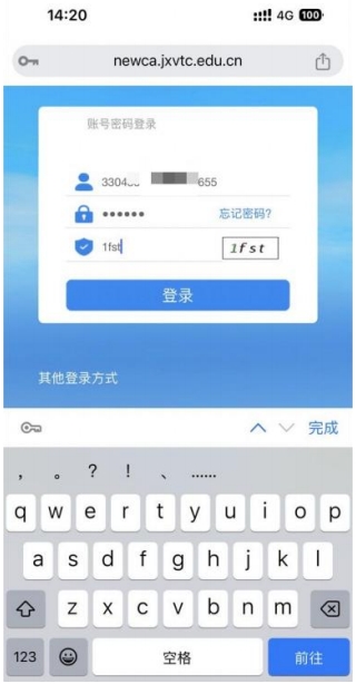 自助服务网网址:https://newca.jxvtc.edu.cn;PC与移动端可用。默认使用身份证为账号,身份证后六位为密码可登录。(如图1,图2所示)