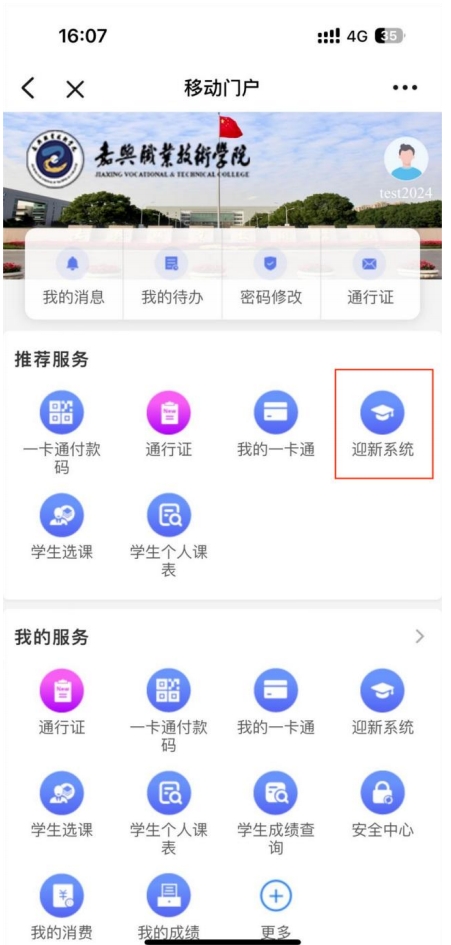 一、 登入嘉兴职业技术学院数字校园网进行网上报到。