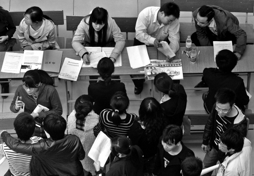 本報(bào)訊 昨天一大早,嘉興職業(yè)技術(shù)學(xué)院圖文信息中心前人頭攢動(dòng),來自嘉興各縣(市、區(qū))及杭州、湖州等周邊地區(qū)共450多家企業(yè)“涌”進(jìn)校園攬才,近8000個(gè)崗位虛位以待。與以往不同的是,前來攬才的企業(yè)更傾向于招聘技術(shù)和管理類人才,而畢業(yè)生則更看重企業(yè)對(duì)個(gè)人今后發(fā)展的空間。
