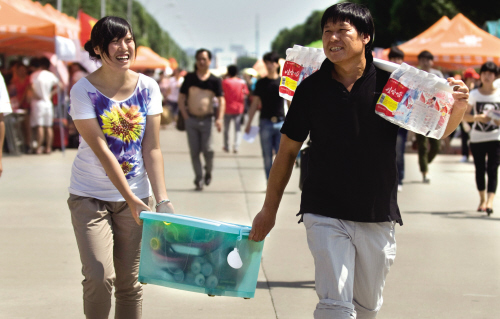 昨天,嘉職院迎來了2011級(jí)新生報(bào)到,來自紹興的求師傅扛著兩箱礦泉水,與女兒抬著行李箱前往宿舍。求師傅說:“新生要軍訓(xùn)了,提前買好水給女兒備著。”