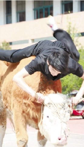 科班出身的張華新覺得,“這也是體育運(yùn)動(dòng)的一種,人徒手對(duì)抗野獸,可算是極限體育。我很喜歡這項(xiàng)運(yùn)動(dòng),和牛斗智斗勇斗力,把牛摜倒的那一瞬間特別爽,也經(jīng)常在學(xué)校里向大家介紹”。