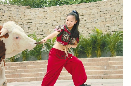 從未看過摜牛的市民們看得目瞪口呆,隨即爆發(fā)出一陣熱烈的掌聲。而這樣的場(chǎng)景,已經(jīng)成為現(xiàn)在節(jié)假日嘉興市一抹必不可少的風(fēng)景。截至2011年底,韓海華帶著弟子們?yōu)榧闻d市民帶來了近40場(chǎng)演出。