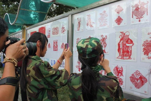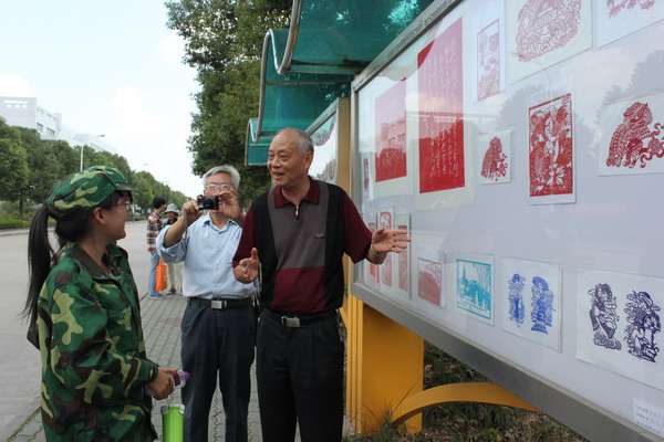 在布展現(xiàn)場(chǎng),得知是嘉興市老年大學(xué)剪紙研究會(huì)的老師,而且其中有本校退休副校長(zhǎng)包申國(guó)老師在指導(dǎo)布展,書畫社的同學(xué)紛紛上前邀請(qǐng)他們以后常來校指導(dǎo),老人們見這些小青年如此好學(xué),便將剩下的精美作品贈(zèng)送給他們帶回去好好研究,以使剪紙藝術(shù)這種非物質(zhì)文化遺產(chǎn)得以傳承。(何曉梅 趙遠(yuǎn)遠(yuǎn))