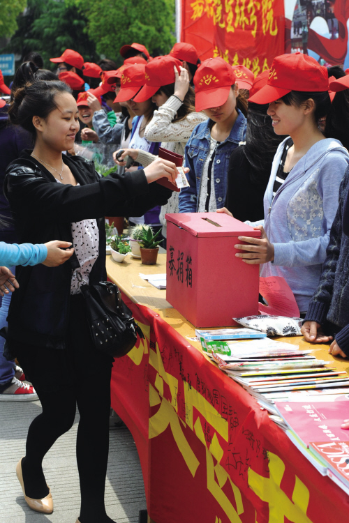 昨天中午,嘉興職業(yè)技術(shù)學(xué)院生物與環(huán)境分院在校園里發(fā)起以“心系雅安,我們和你在一起”為主題的愛心募捐活動?;顒又?,大學(xué)生通過義賣自己栽培的創(chuàng)意小盆栽和精心創(chuàng)作的書畫作品,凝聚同學(xué)們濃濃的愛心。